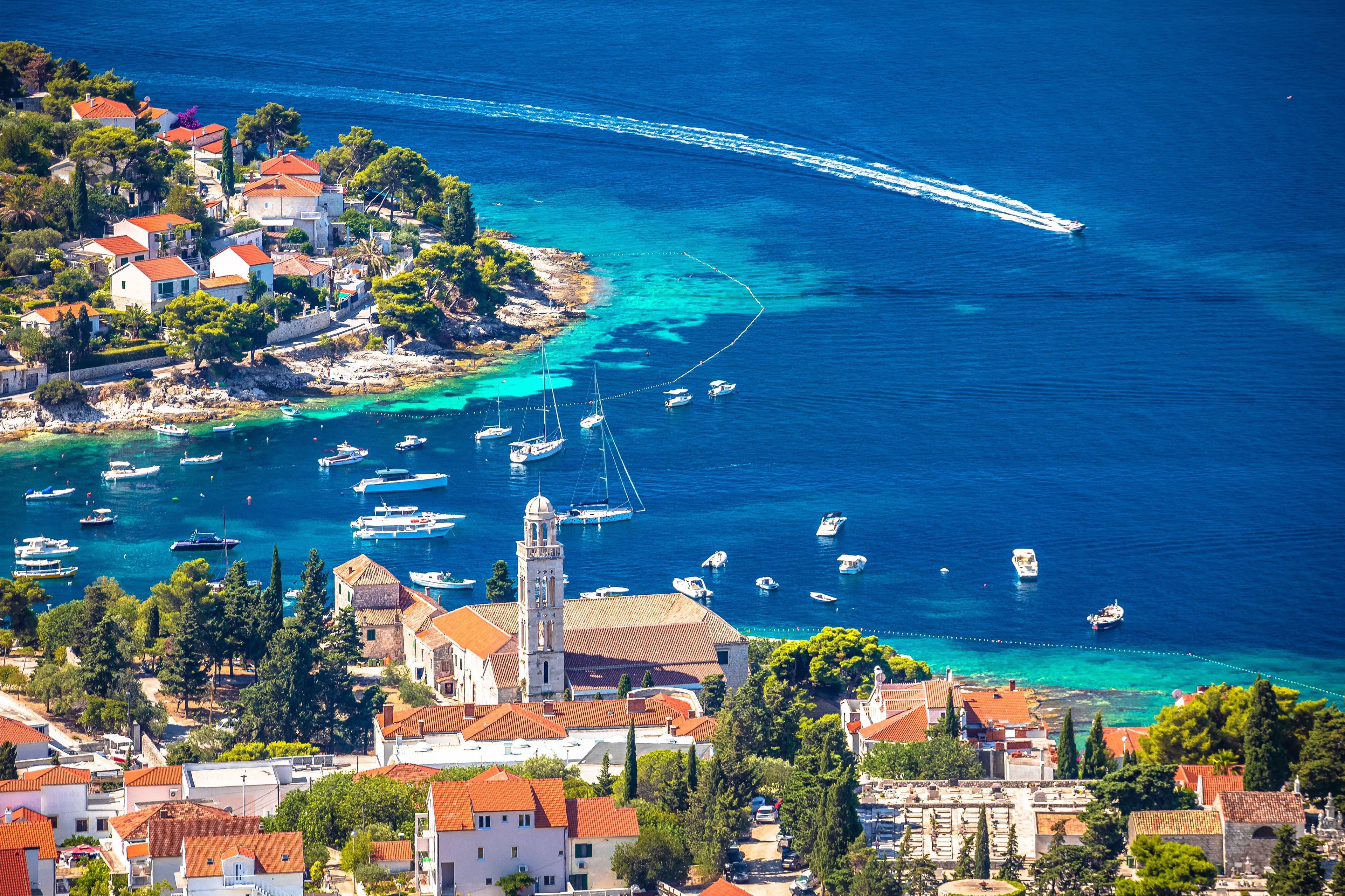 Assis en face de la ville, découvrez les meilleures baies, et n'oubliez pas de regarder en arrière pour voir la majestueuse Hvar disparaître au loin depuis votre bateau.
